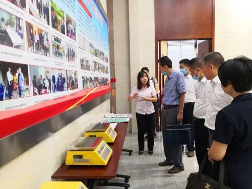 《规范》团体标准发布会前,黄沙水产市场市场管理方为参会有关领导讲解衡器使用情况以及水产市场衡器检定唯一的检定铅封标识、维修铅封标识、绿色检定标识。图源:广州港集团