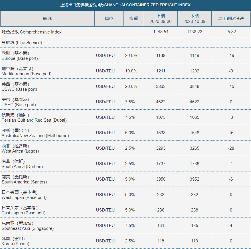 上海出口集装箱货运指数,1009期数据。图源:上海航运交易所官网