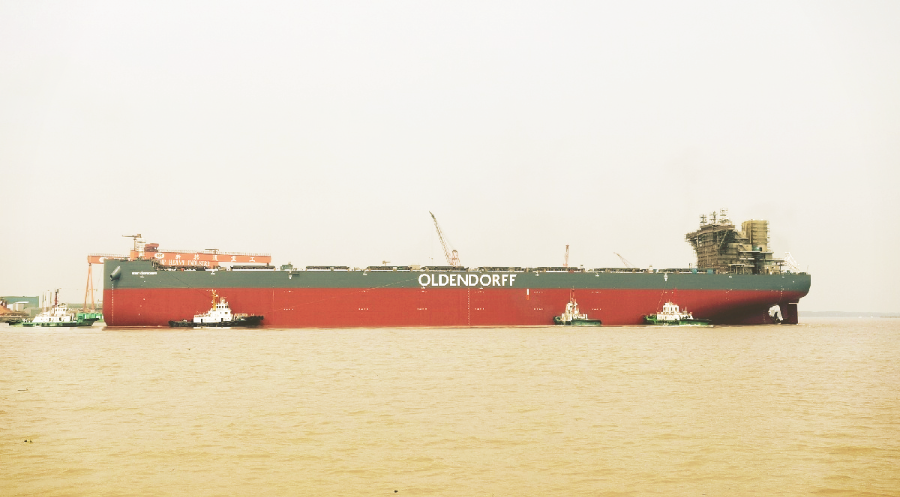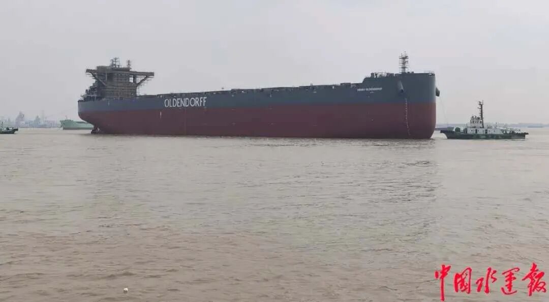 此次出坞的海轮船长299.95米,型宽50米,型深24.9米,设计载重量20.8万吨,为该船厂2015年以来所造最大吨位船舶。“为确保作业水域安全,镇江海事局派出了3条海巡艇,15名执法人员,并有6条拖轮辅助作业。”镇江海事局扬中海事处副处长周燕翔介绍。