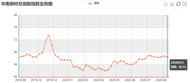 华南建筑钢材价格指数。数据来源:水泥研究院
