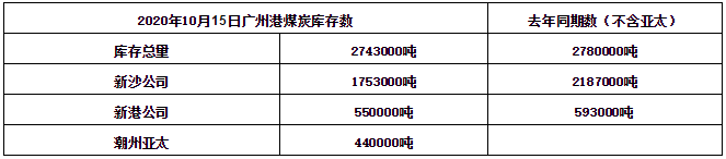 广州港煤炭库存。数据来源:广州华南煤炭交易中心