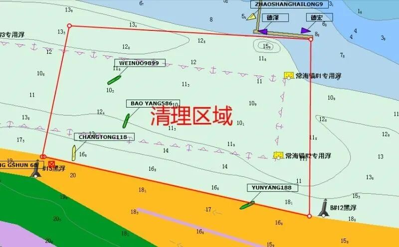 (红框清理区域,10月9日1030时至1130时禁止船舶锚泊)