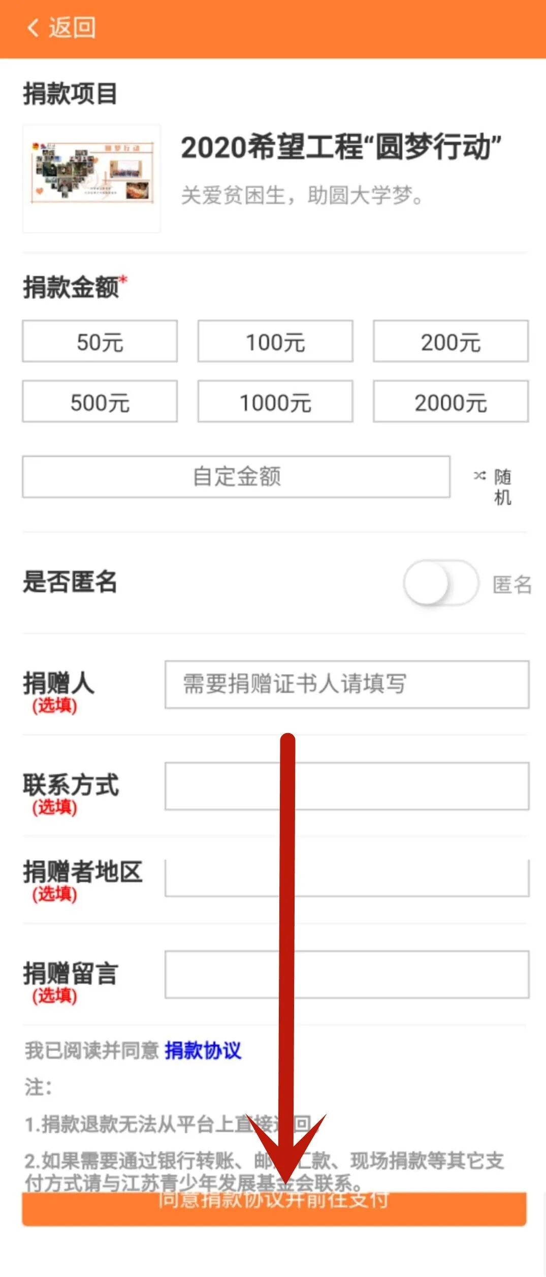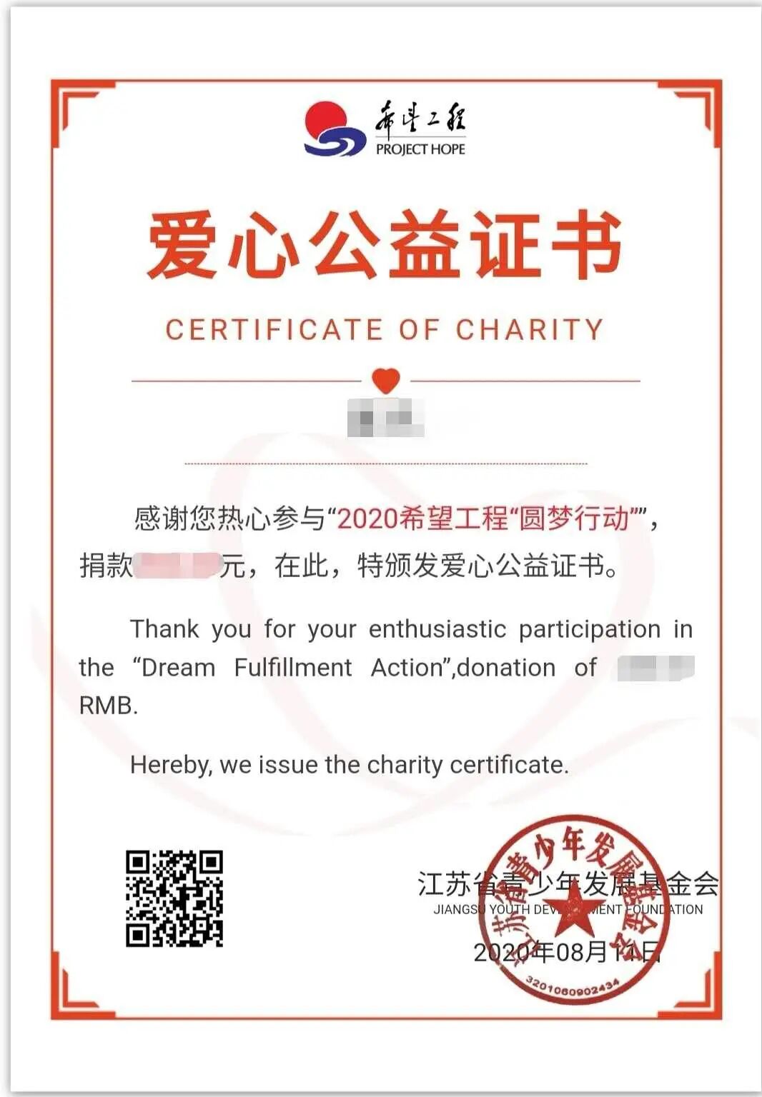 (五)捐助完成后,您将获得由江苏省青少年发展基金会出具的爱心公益证书。