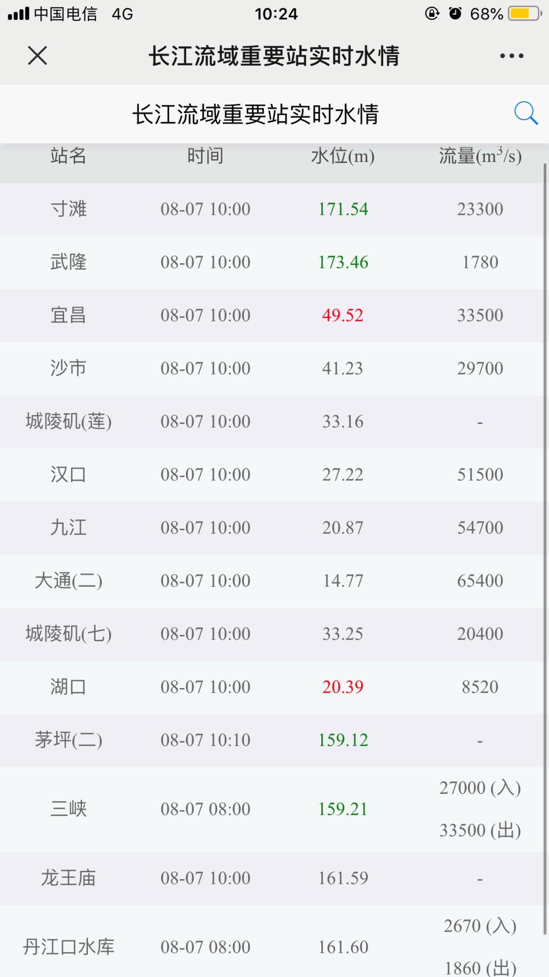 【水情】长江流域重要站实时水情(2020年8月7日10时)