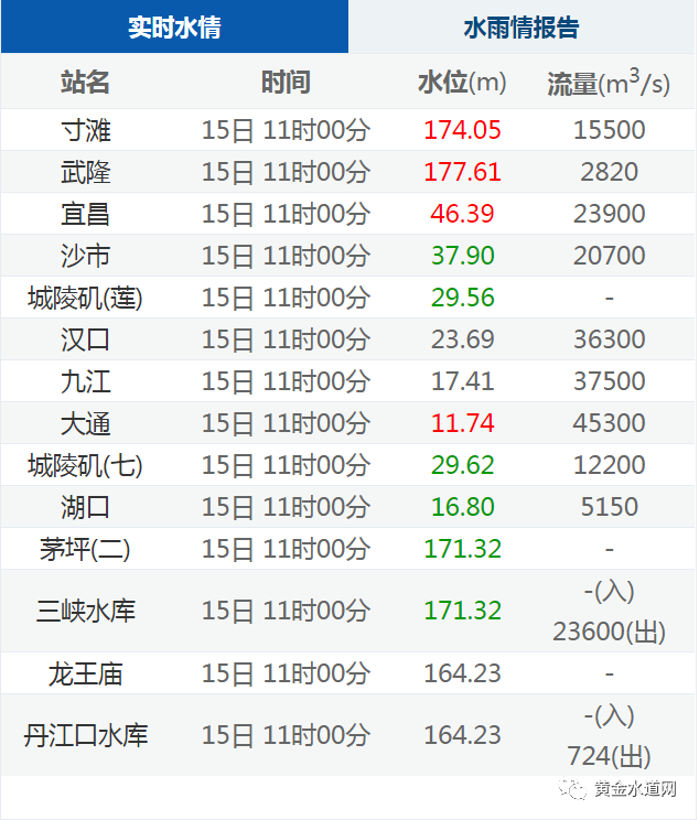 【水情】长江流域重要站实时水情(2020年10月15日11时)