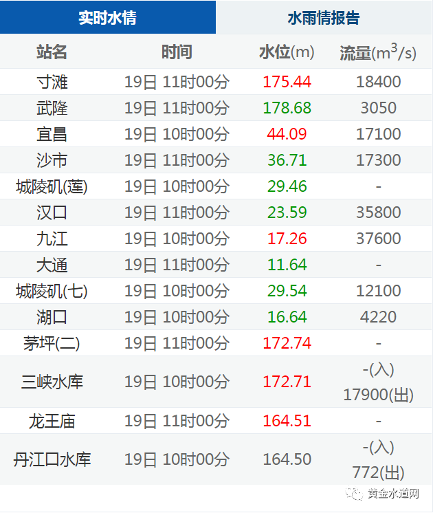 【水情】长江流域重要站实时水情(2020年10月19日11时)