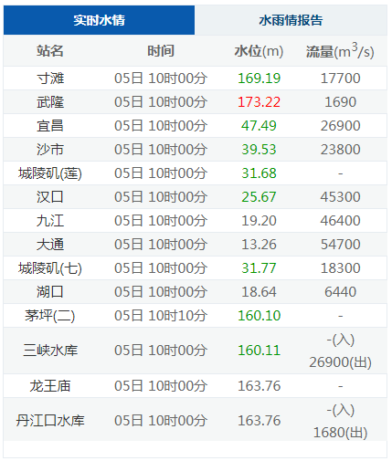 【水情】长江流域重要站实时水情(2020年9月5日10时)