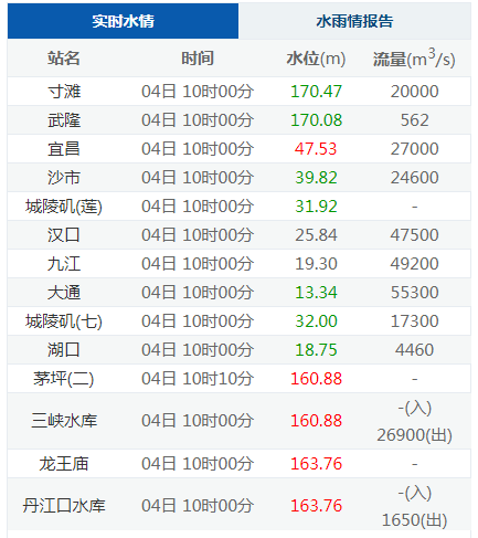 【水情】长江流域重要站实时水情(2020年9月4日10时)