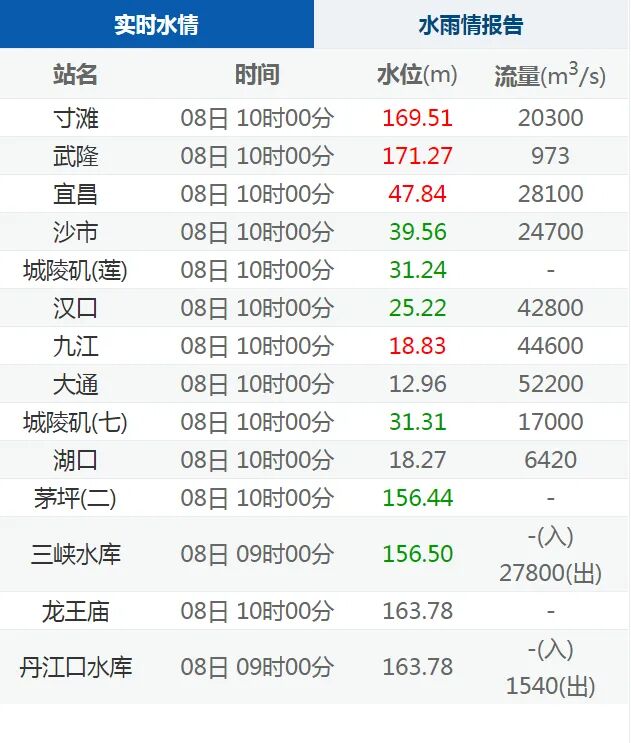 【水情】长江流域重要站实时水情(2020年9月8日10时)