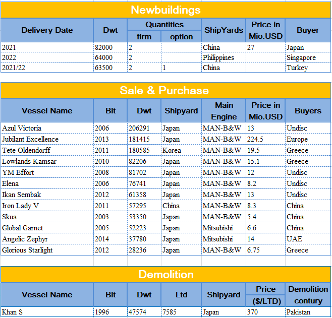 BPI周五报收1313点,同比上周末下跌160个点。巴拿马型船期租水平报收11,817美元/天,同比上周下跌1443美元/天。巴拿马型船继续下跌。南美航线需求不多,82k船舶成交大概在新加坡交船14,000美元/天或更低些的水平。太平洋市场维持北强南弱的态势,澳洲、nopac有些新增货盘支撑市场,印尼需求不多,成交大概在12000美金/天左右。期货市场周五企稳回升是个不错的信号,希望现货的需求可以配合。