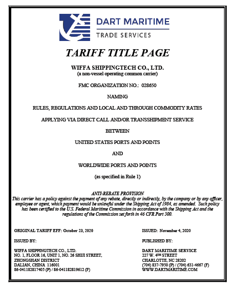 WIFFA获取美国FMC资质,WIFFA提单应用在即