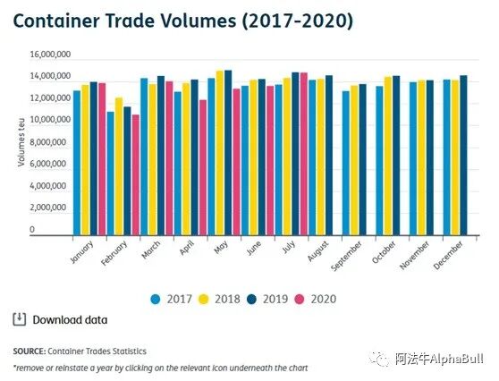 集装箱贸易统计(CTS)数据显示,2019年集装箱贸易仅增长了1%。