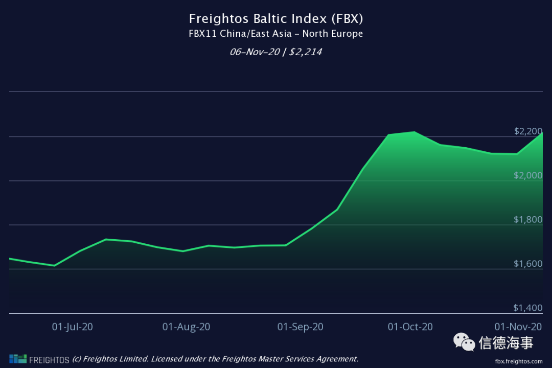 据信德海事2020年11月10日消息,有分析师最新表示,集装箱被转移到更为有利可图的美线市场,加上货量的增加正推动欧线市场运价大幅上升。