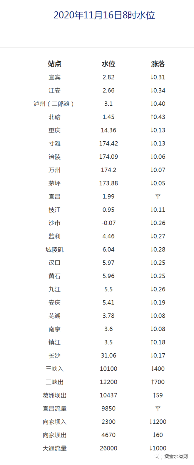 【水情】长江流域重要站实时水情(2020年11月16日10时)