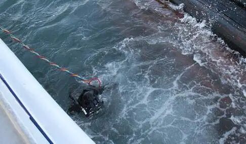 抵达现场后,经现场风险评估和紧张磋商后,搜救人员下水进行探摸,发现渔船尾部有生命迹象,现场人员立即制定救助方案。按照翻扣船应急救助预案程序,应急救助队在“北海救115”轮的配合下将遇险船固定在“北海救115”轮左舷,并清理船尾渔网等杂物,为下一步潜水作业做好安全保障。