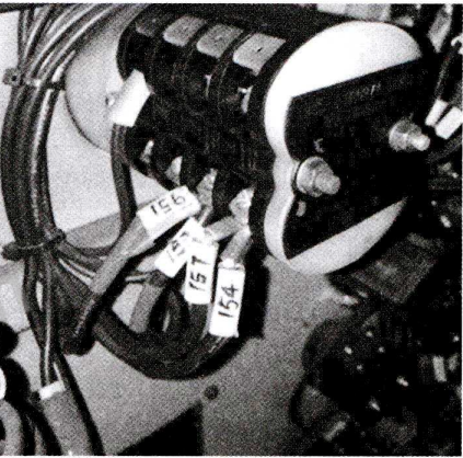 把156﹟线与电屏电源正极153﹟线相连,把157﹟线与电屏电源负极154﹟ 线相连(图2) 。