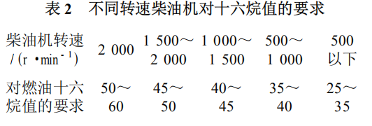 不同转速的柴油机对十六烷值有不同的要求 ,见表2。