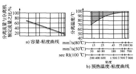 重油在分离盘中停留的时间则应尽可能延长,根据主要厂商提供的说明给出的分离机容量和预热温度的曲线 ,见图1。