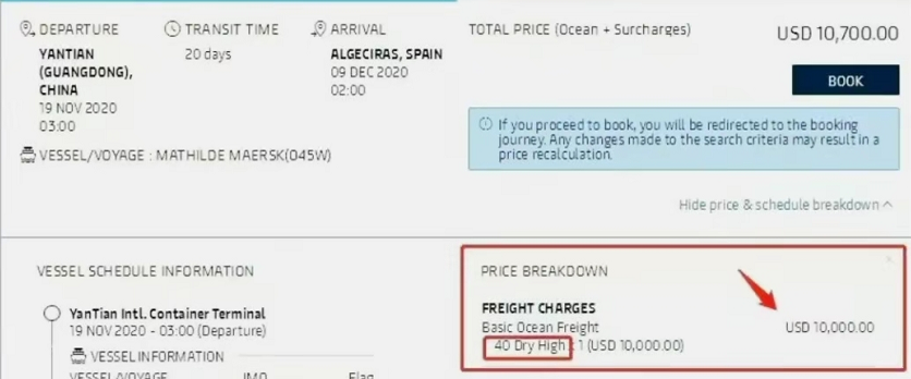 对,前几天大家都知道,盐田至阿尔赫西拉斯的运价更是已高达10000美金。