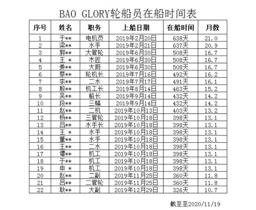 全船22个船员全部超合同期(合同8+2)公司为缩减成本种种理由搪塞仍不给换班,在国外不给换班只能回国内换班,可是船却迟迟不回国。