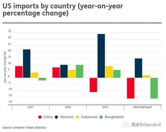 AlixPartners公司的布莱恩·内梅思说:“大量制造业从中国转移到东南亚的趋势已经持续了好多年。不仅有很多货量流向越南、泰国、柬埔寨、菲律宾和印度尼西亚,也有不少流向了南亚,特别是印度。我们看到零部件从中国南部转移到越南等地进行最后的组装”,这为相关的制造业转移增添了色彩。”
