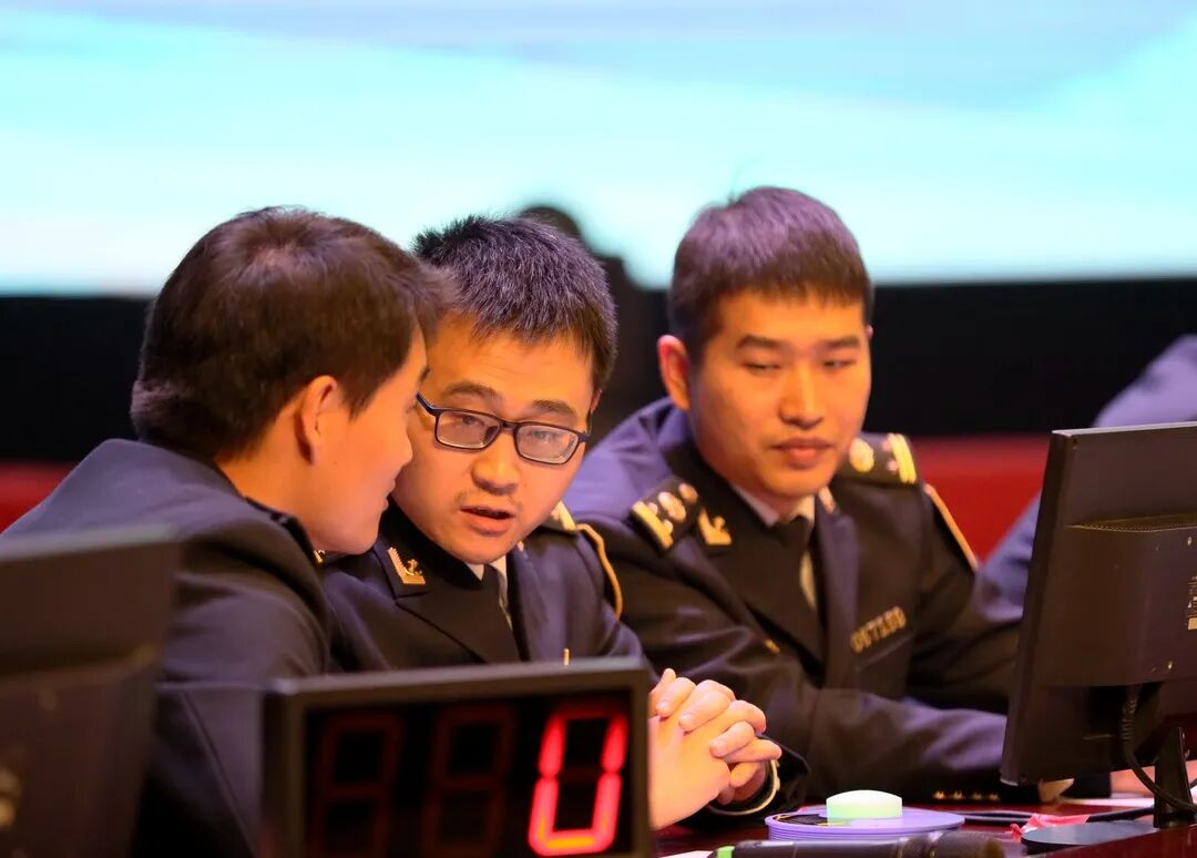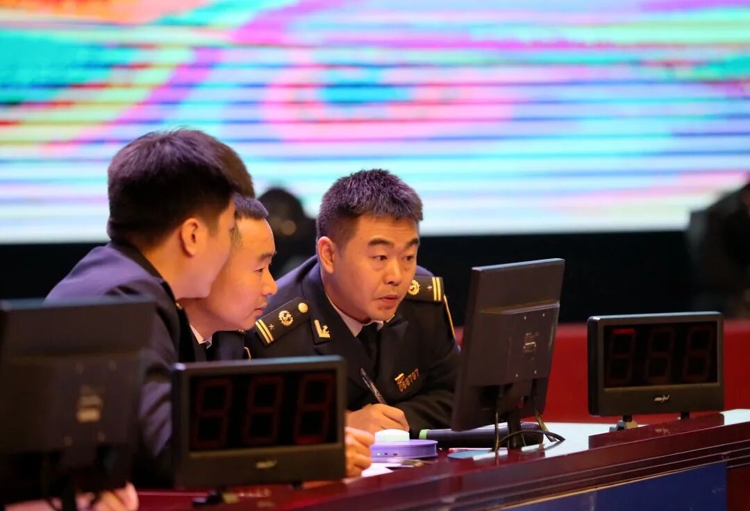 1700多名海事执法人员参加初赛,经过考核检查实务和技术法规,92名选手进入复赛,再经过理论知识的考试筛选,30名选手脱颖而出,进入决赛。前两轮综合成绩排名前六的代表队进入了11月27日第三阶段的团体决赛——综合知识竞答,比赛竞争激烈程度空前。