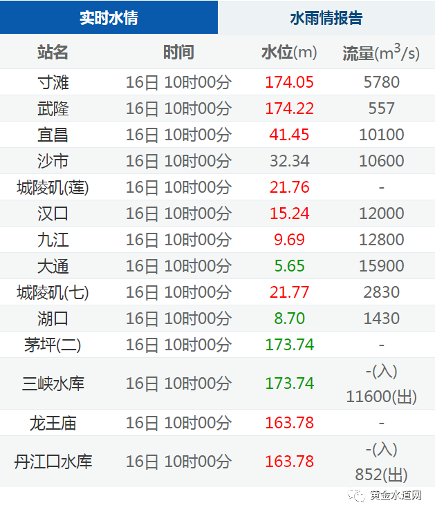 【水情】长江流域重要站实时水情(2020年12月16日10时)