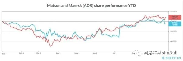 然而,集装箱船租赁的股票价格没有随费率的升高而上涨。迄今为止仍然在30%-40%的区间内下跌。