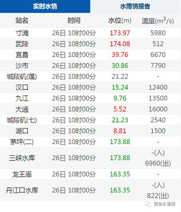 【水情】长江流域重要站实时水情(2020年12月26日10时)