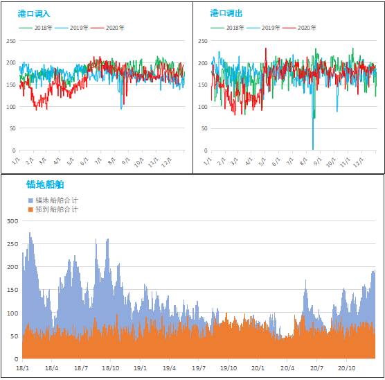 28日,环渤海八港锚地船舶数量194条,预到船舶52条。目前,下游供暖、化工、水泥厂等企业采购积极性不减,到港拉煤船舶明显增多;叠加港口资源紧缺和封航影响船舶有所积压,环渤海港口锚地船舶数量维持高位。