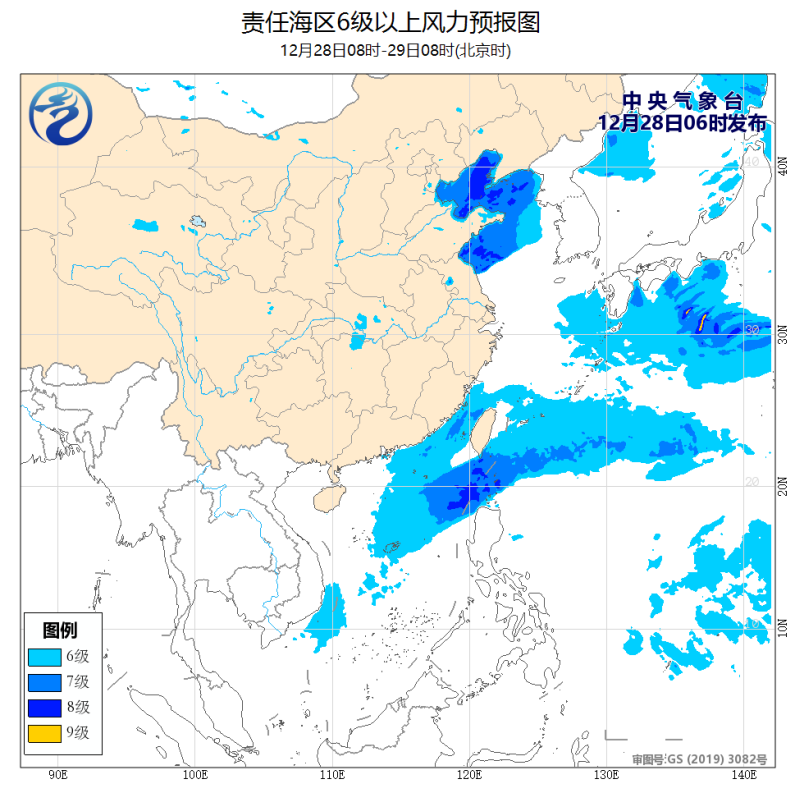 28日08时至29日08时,渤海、渤海海峡、黄海大部海域将有4~5级、阵风6级的东北风转7~8级、阵风9级的偏北风,巴士海峡将有7~8级、阵风9级的东北风,东海大部海域将有4~6级、阵风7级的东北风转东南风,台湾海峡、台湾以东洋面、南海东北部海域将有6~7级、阵风8级的偏北到东北风,南海中部和西南部海域将有5~6级、阵风7级的偏北到东北风。北部湾、琼州海峡将有轻雾,能见度不足10公里。
