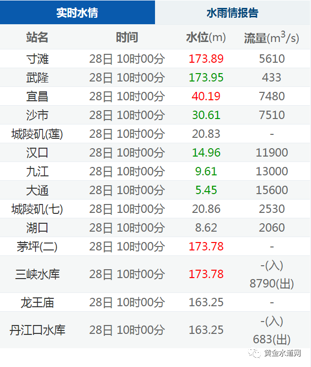 【水情】长江流域重要站实时水情(2020年12月28日10时)