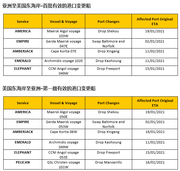 MSK和MSC同步决定对跨太平洋网络进行以下结构调整,自2021年1月起生效,直至另行通知。