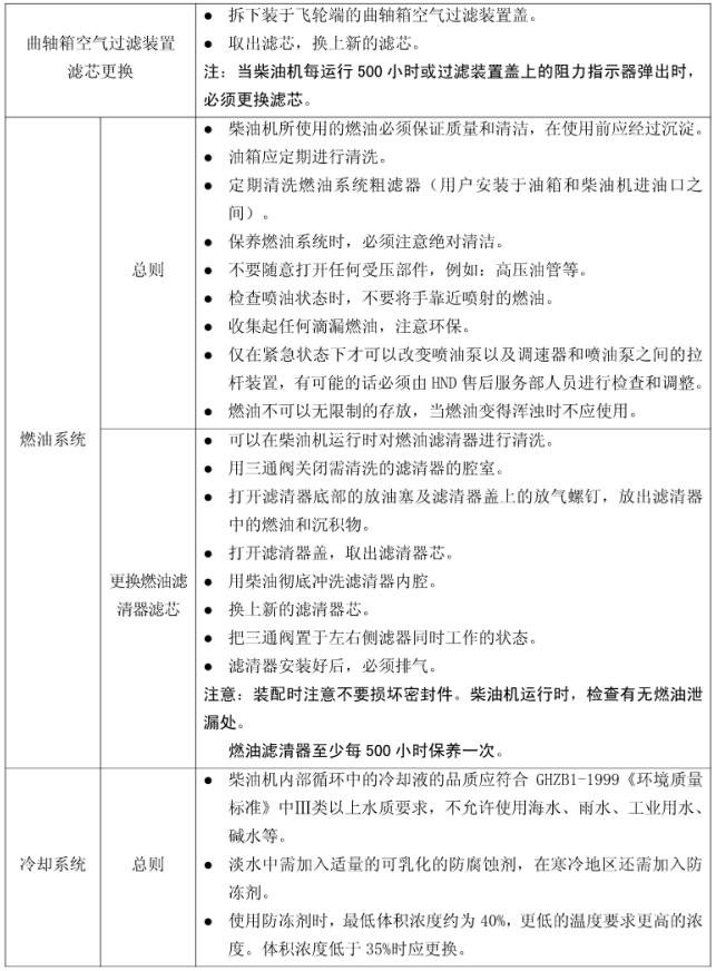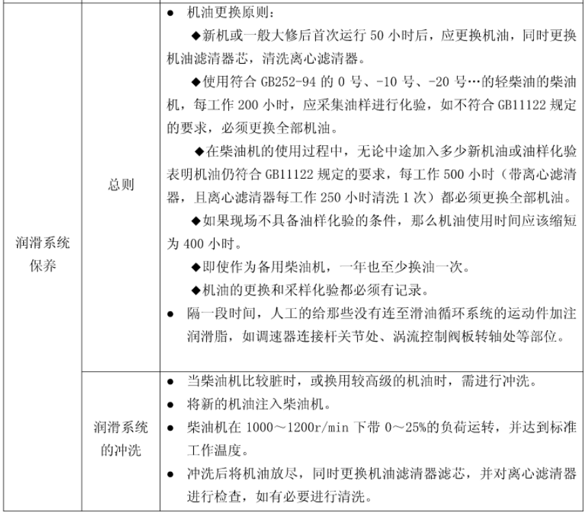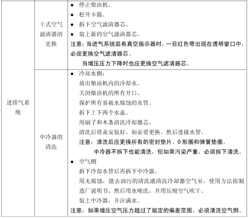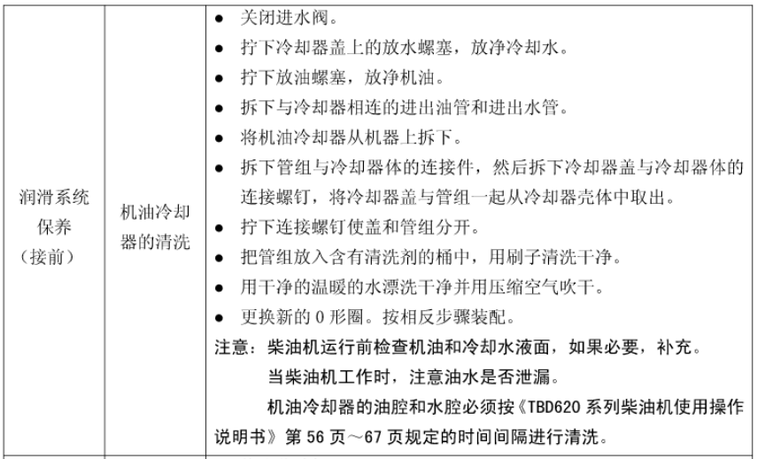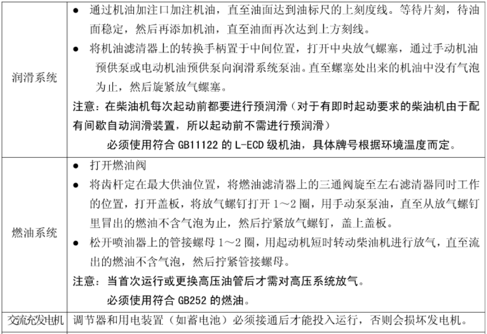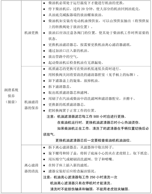 新机或大修后第一次运行50小时后必须检查、保养下列项目: