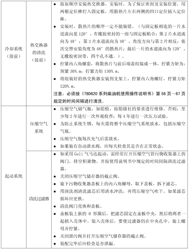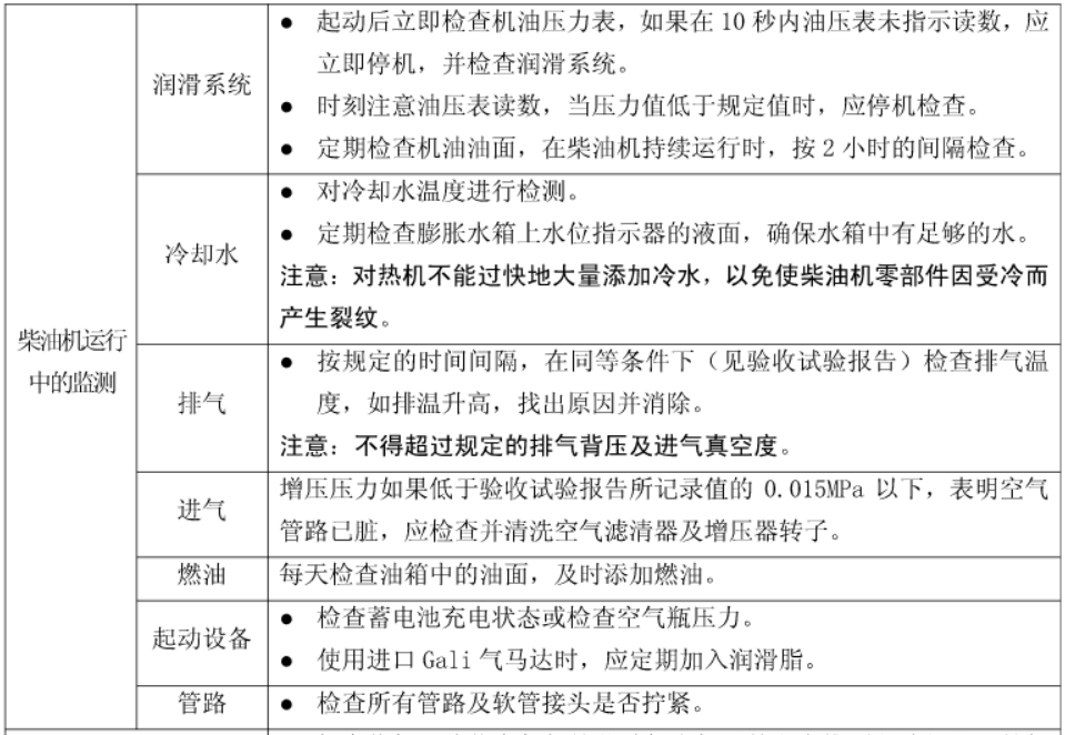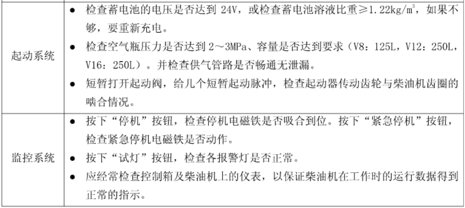 3.检查柴油机的对中和弹性支承,检查基座螺栓是否紧固良好。