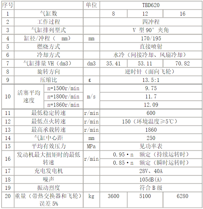 于九十年代初在604B柴油机的基础上,在保持缸心距、缸径、冲程和外形尺寸基本不变的情况下,通过优化设计,将604B柴油机的单缸最大功率由120kW提高到146kW,而且在技术性能指标上也有较大的突破与提高,成为604B的高功率级柴油机,即620系列柴油机。