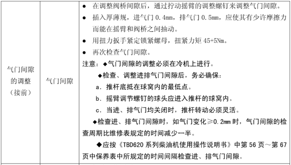 2.检查进、排气门间隙,并重新拧紧气缸盖上进气管螺栓。
