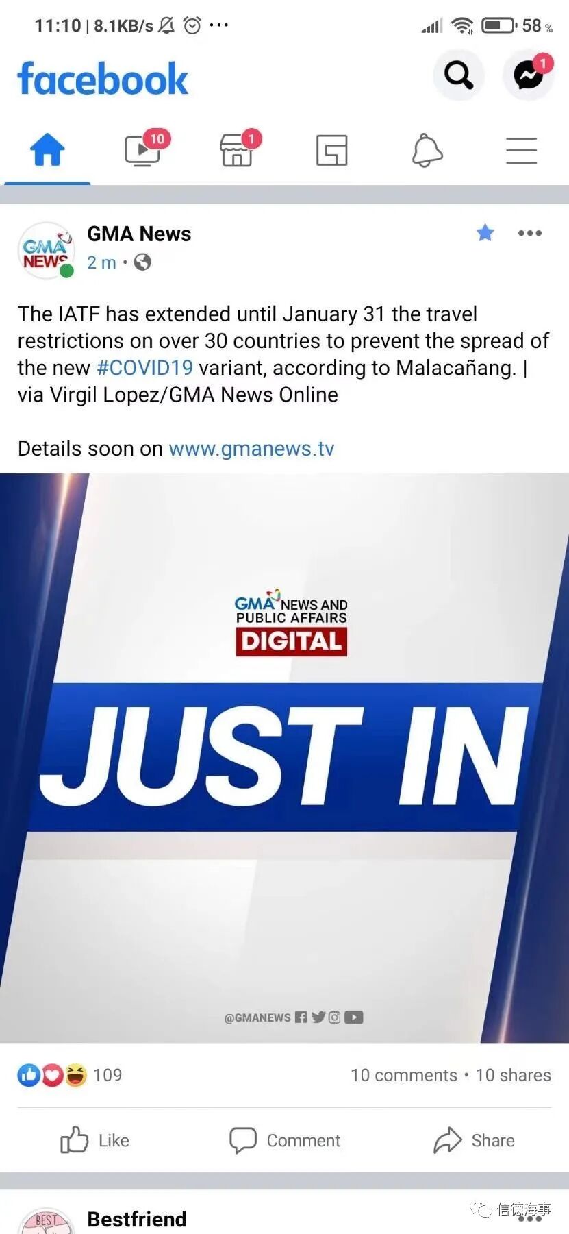 先前当地时间1月13日,菲律宾港务局(PPA)宣布为防止新冠病毒变种在菲传播,将5个国家新列入禁止换班的名单中,分别将巴基斯坦、牙买加、卢森堡、阿曼和中国等5国加入禁止在菲律宾任何港口更换船员的名单。