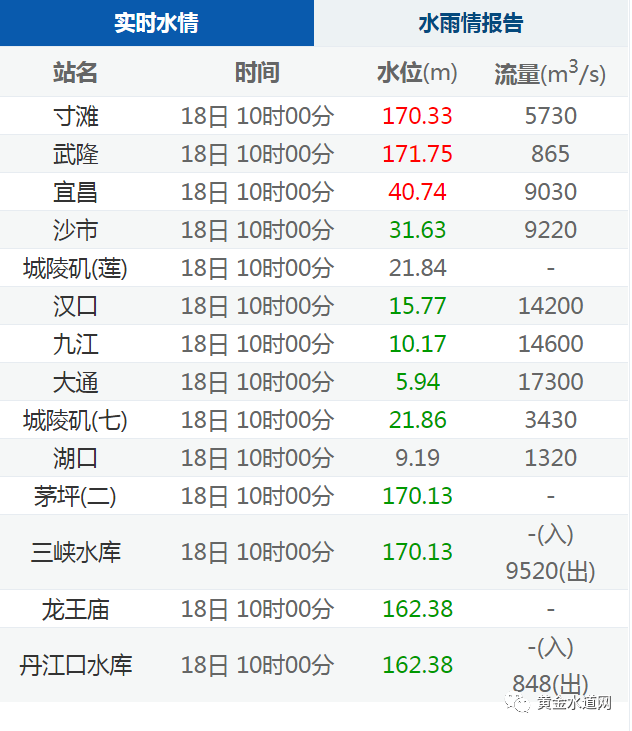 【水情】长江流域重要站实时水情(2021年1月18日10时)