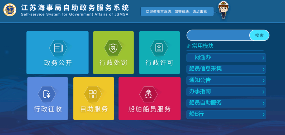 为深入贯彻落实国务院《优化营商环境条例》,充分利用“互联网+”、“人工智能”等技术提升行政务服务效率,江苏海事局开发政务自助服务系统,系统包括政务公开、行政处罚、行政许可、自助服务、船舶船员服务五大功能,总计55项政务服务事项、8项业务查询、5项自助服务,系统具备业务办理、云柜存储、信息查询、进度跟踪等功能,办事人员可24小时发起线上申请、现场操作和资料投放。