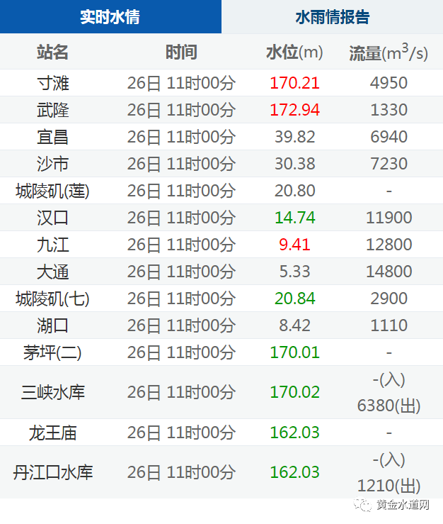 【水情】长江流域重要站实时水情(2021年1月26日11时)