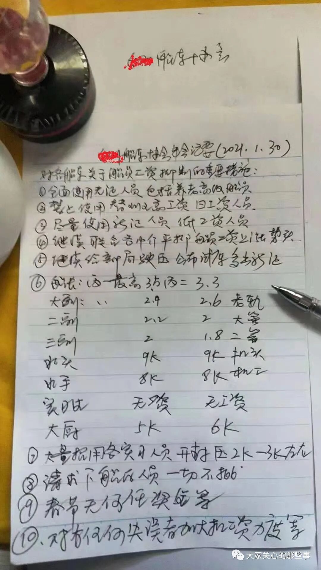 对船东关于船员工资抑制的重要措施:①全面使用无证人员包括养老高级船员②禁止使用替班高工资、日工资人员③尽量使用新证人员、低工资人员④继续联合各中介平抑船员工资上涨势头⑤继续给部、局施压、公布试题题库、多出新证⑥船长:丙一最高3.5万;丙二3.3万大副、老轨:丙一最高2.9万;丙二2.6万二副、大管:丙一最高2.2万;丙二2.0万三副、二管:丙一最高2.0万;丙二1.8万水头、机头:丙一最高0.9万;丙二0.9万水手、机工:丙一最高0.8万;丙二0.8万实习生丙一 无工资; 丙二无工资大厨:丙一最高0.5万;丙二0.6万⑦大量招用各实习人员、开封压2K-3K(千)左右⑧请求下船的人员一切不批⑨春节无任何资金等⑩对任何失误者加大扣工资力度等