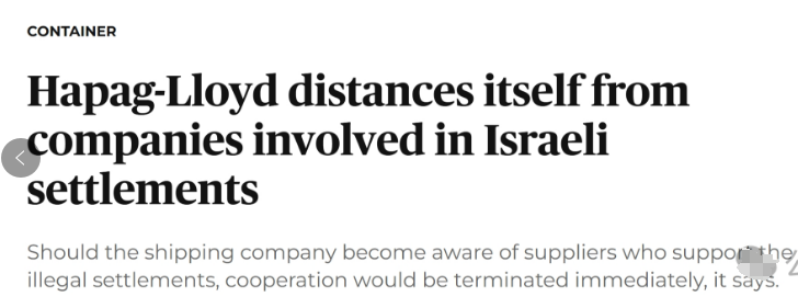 赫伯罗特近日在给欧洲航运媒体 ShippingWatch 的书面回复中表示:赫伯罗特不希望与参与包括非法驱逐和定居等侵犯人权行为的供应商合作。