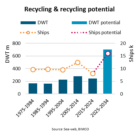 当然,实际回收数量仍将受市场供需和政策因素影响——若航运市场保持强劲,部分老旧船舶可能延后退役;反之,在运力过剩或环保压力下,拆解速度可能进一步加快。“无论如何,可以预见的是,未来的拆船数量与吨位都将远高于过去,行业也必须做好充分准备,应对《香港公约》带来的合规挑战,”Rasmussen表示。