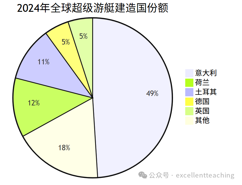 全球豪华游艇制造业长期呈现 “欧洲中心” 格局,意大利、荷兰、德国凭借技术、设计与品牌优势,占据全球市场 80% 以上的份额。但近年来,土耳其凭借成本优势崛起,中国等亚洲国家逐步在中大型游艇领域突破,为市场注入新变量。