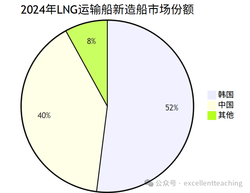 长期以来,全球 LNG 运输船市场形成了 “建造看亚洲,船东看欧洲” 的固化格局:韩国船厂垄断建造环节,希腊、日本船东主导运营环节。但过去三年,中国企业的崛起正在打破这一平衡,推动市场格局向 “中韩双雄” 演变。