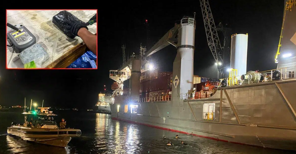据悉,这批毒品是在迈阿密港进行水下检查时发现的,一支专业潜水队从船体水下结构上拆除了这些捆绑在船上的毒品。当局称,这批可卡因被藏匿在“船体深处”,该表述常用于描述位于船体部分的海底阀箱。