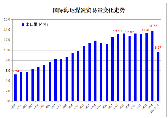 据船舶经纪与服务集团班切罗・科斯塔(Banchero Costa)最新发布的市场周报(MARKET REPORT – WEEK 41/2025),其援引AXS Marine船舶跟踪数据显示,2025 年1-9月,国际海运煤炭船舶载运量(不包括各国国内沿海货物运输)累计为9.674亿吨,比上年同期下降4.3%。
