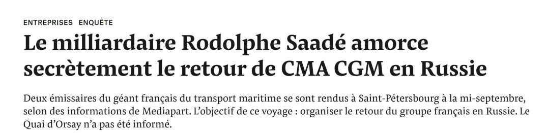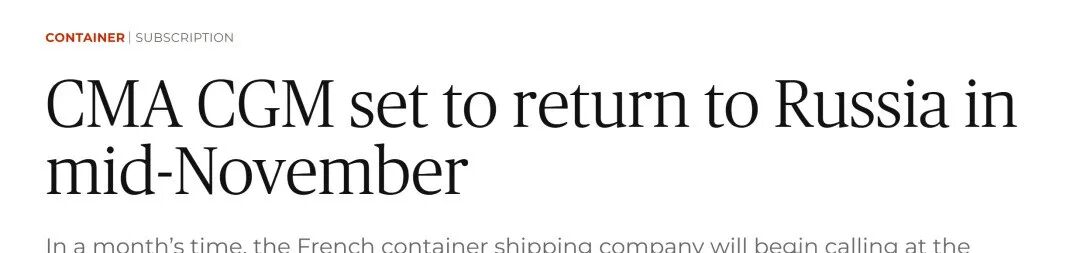 最新获悉:自2022年3月俄乌危机爆发以来,在时隔三年多之后,全球第三大集装箱班轮公司、法国达飞轮船宣布将于11月17日重返俄罗斯。