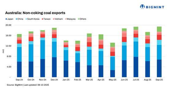 BigMint 10月8日发布的信息显示,2025年9月,澳大利亚非焦煤(动力煤)出口出现显著回升,主要得益于亚洲主要市场强劲的采购兴趣以及港口运营状况的改善。